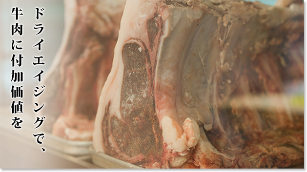 誰もが耳にした事があると思いますが、昔から『肉は腐りかけがうまい』と口々に言われてきました。 実はそれには確たる根拠があり、肉自身の酵素の働きなどの熟成メカニズムが含まれ 自然においしいお肉へと変化していきます。 しかし、『ドライエイジングビーフ』はただのそれとは一線を画すもので、精肉店の長年に渡る経験・知識・技術から更に研究に研究を重ねた結果確立され、 『日本の牛食文化に一石を投じる』全く新しい牛の熟成方法です。